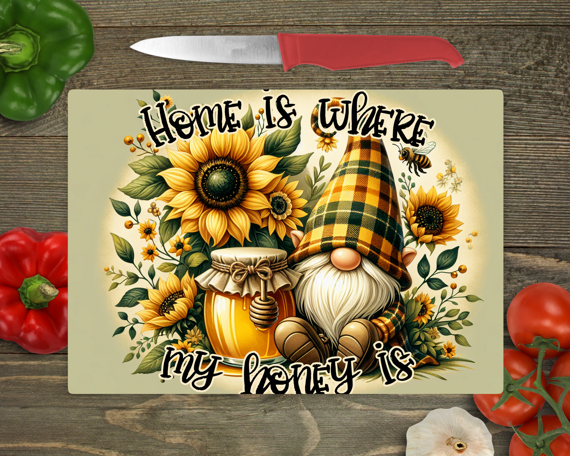 Home is Where my Honey Is w/ Gnome & Sunflowers Rectangle Cutting Board